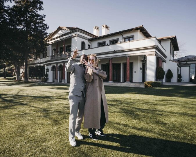 Co więcej, wygląda na to, że zakochani w końcu zamieszkają razem. Na pierwszym zdjęciu Adele i Paul stoją przed domkiem i trzymają klucze. Dom został zaprojektowany przez Richarda Landry'ego i był wcześniej własnością aktora Sylvestra Stallone'a. W rezydencji znajduje się osiem sypialni i dwanaście łazienek. Para kupiła nieruchomość za 58 milionów dolarów.