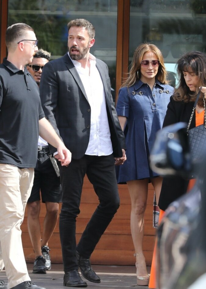 Lopez uzupełniła ten odważny strój o sandały na platformie. Przy okazji, ona ma tylko 164 cm wzrostu, ale Affleck jest dość wysoki (186 cm), więc taki wybór obuwia do wizerunku to dobra opcja na wspólne wyjście.