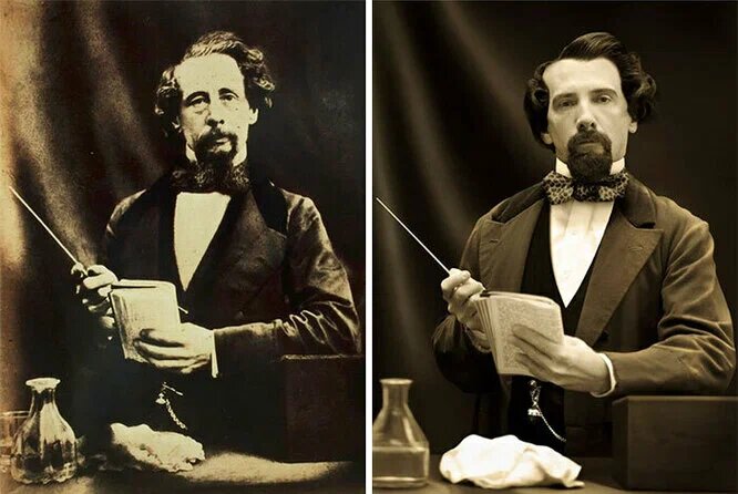 Po lewej: Charles Dickens, 1858 r.; po prawej: Gerald Charles Dickens, praprawnuk
