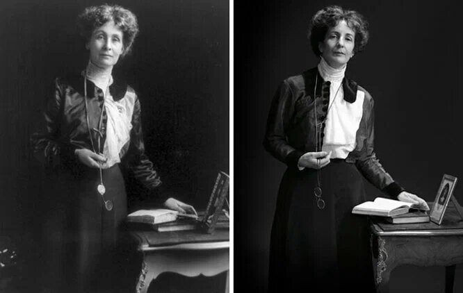 Po lewej: Emmeline Pankhurst; po prawej: Helen Pankhurst, prawnuczka