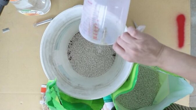 W zasadzie do stworzenia masy, z którą będziesz pracować, wystarczą piasek, beton i woda. Aby jednak figura była nieco lżejsza, należy użyć torfu ogrodniczego, agroperlitu i betonu w równych proporcjach.