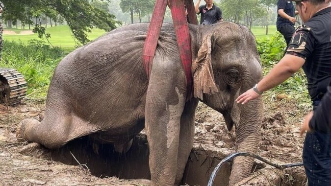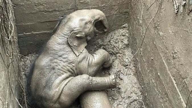 Akcja ratunkowa trwała około 3 godzin, ale wolontariuszom udało sięwydostać słoniątka.