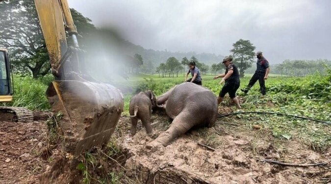 Matka słoń zaciekle chroniła młode, uniemożliwiając ratownikom, którzy przybyli na miejsce, wykonanie swojej pracy.