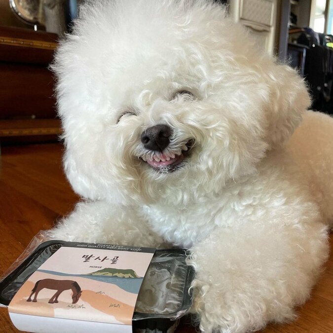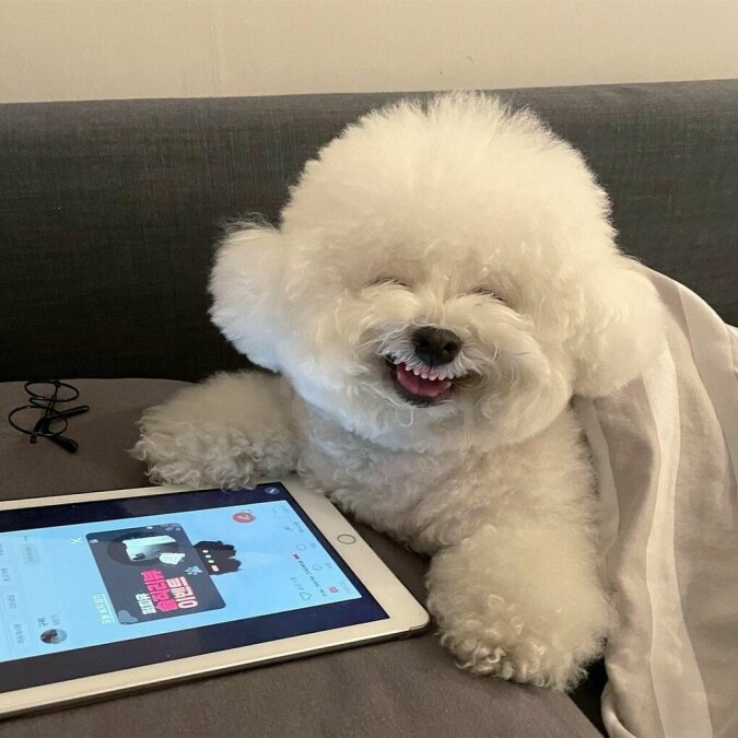 Ten uroczy szczeniak z Korei Południowej rozśmiesza Internet swoim cudownym, prawie ludzkim uśmiechem. To rasa Bichon Frise - sunia jest bardzo towarzyska i wesoła!