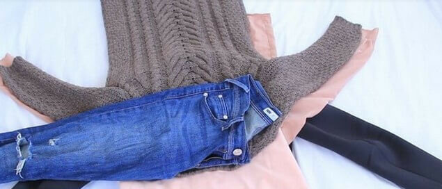 Teraz przyszła kolej na spodnie i jeansy. Powinny być umieszczone poziomo do pozostałych rzeczy.