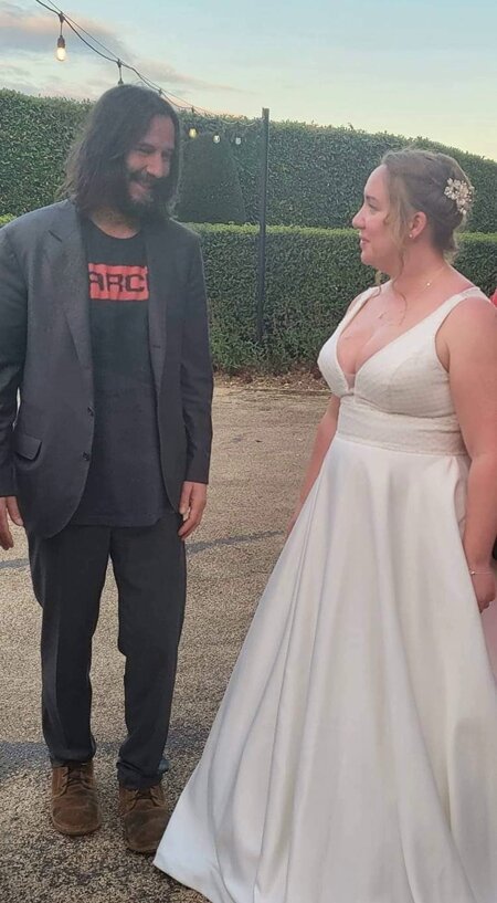 Jednak w środku uroczystości pracownik hotelu podszedł do panny młodej i powiedział jej, że przyszedł wyjątkowy gość i chce pogratulować. To był Keanu Reeves.