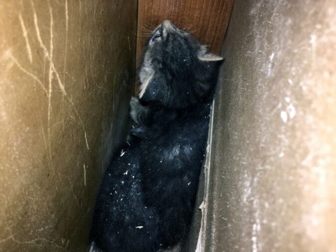 Dwa malutkie kociaki zostały uwięzione między dwoma ścianami. Kociaki były tam uwięzione przez około trzy dni...