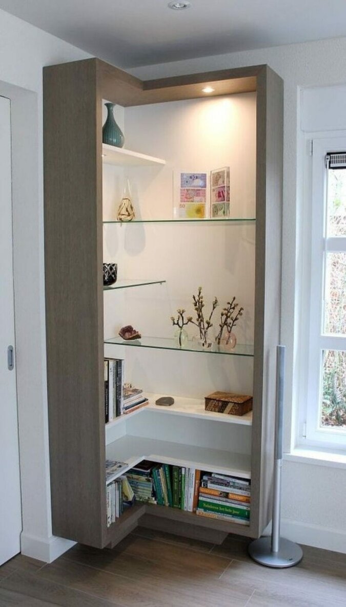 Tego typu szafkę można zrobić nawet tam, gdzie jest bardzo mało miejsca. Co więcej, może pełnić dodatkową funkcję, ukrywając szczeliny między meblami lub umożliwiając pracę z domu.