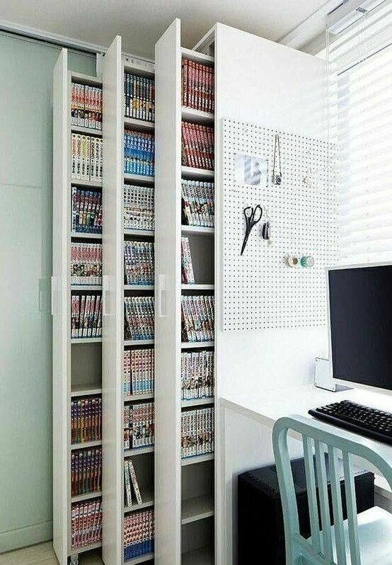 Aż trudno uwierzyć, że zaledwie kilka metrów kwadratowych wystarczy, by pomieścić domową biblioteczkę. A to wszystko dzięki wysuwanej szafy.