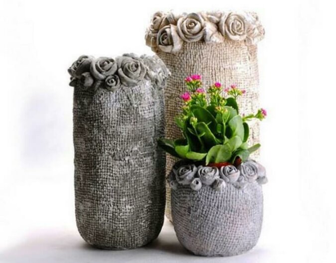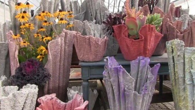 Doniczki z tkaniny mogą być w wielu różnych kształtach, wybierz swój własny. Zamiast kleju można użyć cementu i nie tylko.