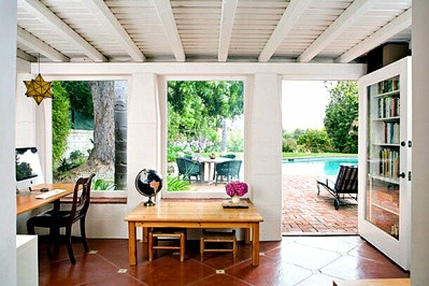 Korzystając z jego rad, aktorka zakochała się w ładnym ogrodzie przytulnego prywatnego domu o białych ścianach w dzielnicy Brentwood w Los Angeles. Dom został zbudowany w 1929 roku i znajduje się blisko Santa Monica i oceanu, pomiędzy Sunset Boulevard i San Vicente Boulevard (główna ulica Brentwood).
