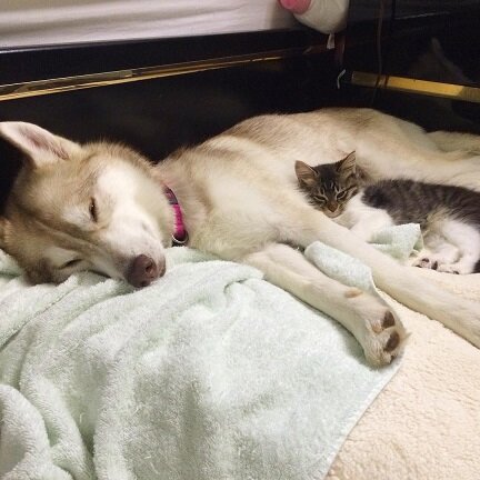 Przenigdy nie posiadałam psa z rasy husky, lecz przez innych ludzi wysłuchałam na ich temat mnóstwo złych opinii i (jak zawsze) wywnioskowałam, iż są to brednie. Zajmowałam się kiedyś owczarkiem niemieckim, amstaffem, dobermanem i ani jeden z tych psów nigdy nie przejawiał agresji, ponieważ nie zostały one tej agresji nauczone przez żadnego z właścicieli. Tak więc czemu ta cudowna husky miałaby być agresywna? Suczka o imieniu Lilo wykonała rzecz, świadczącą o jej ogromnym serduszku. Otoczyła ona ramieniem malutkiego kota, dzięki czemu urtaowała jego życie. Spójrzcie na te wzruszające zdjęcia!