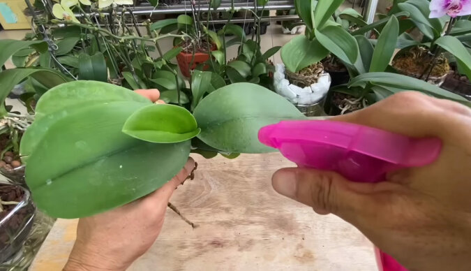Przygotuj roztwór składający się z 50 ml wody utlenionej i 50 ml zwykłej wody, spryskaj nim liście i korzenie storczyka. Należy to zrobić, aby zdezynfekować i odkazić roślinę przed przesadzeniem jej w nowe miejsce.