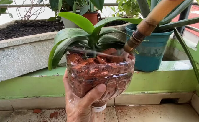 Przesadzony storczyk należy obficie podlać wodą o temperaturze pokojowej.