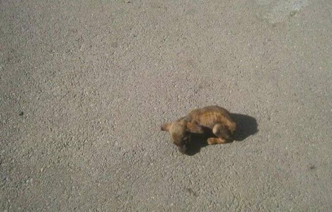 Podczas spaceru przyjaciółki zauważyły zwierzę zwinięte w kłębek na środku chodnika. Nie było wiadomo, czy pies żyje, czy nie.