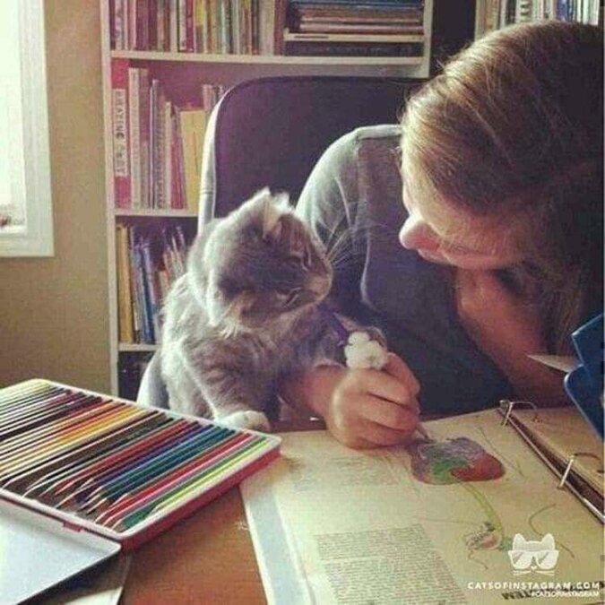 Nawet jeśli kot przeszkadza, to prawdopodobnie robi to z jak najlepszymi intencjami.