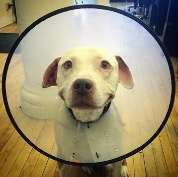 Brinks jest tak przyjaznym psiakiem, że każde spotkanie z miłym człowiekiem go cieszy. Nawet jeśli jest to weterynarz!