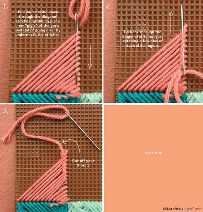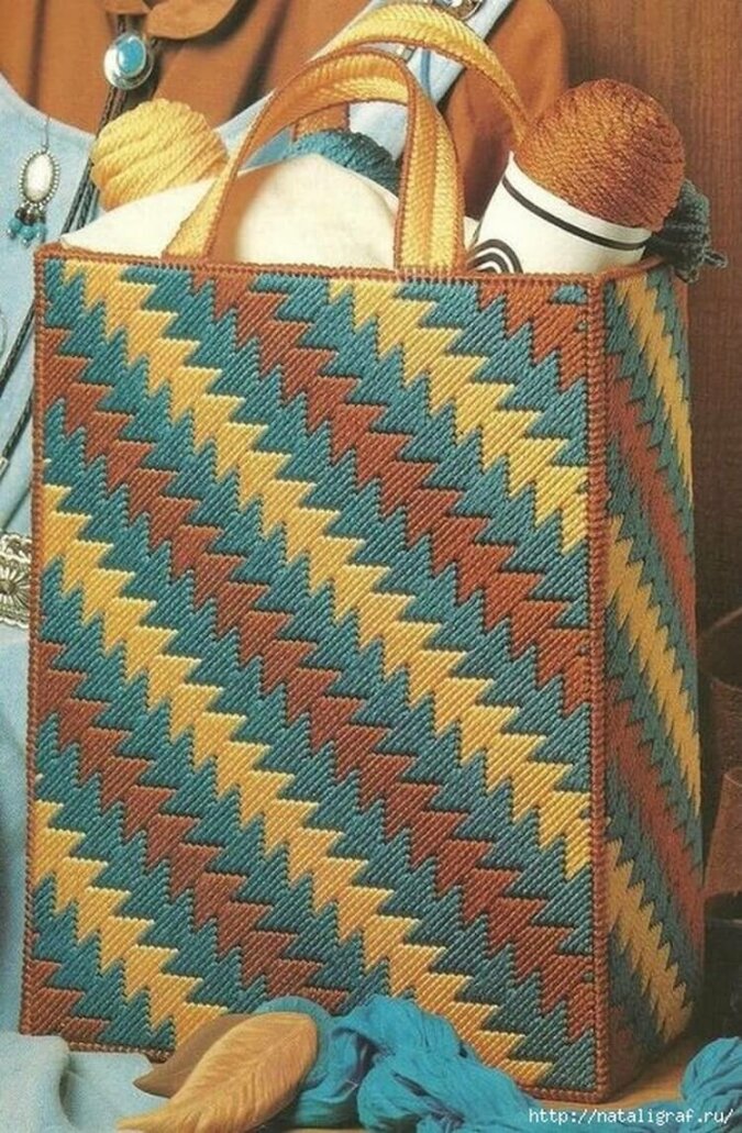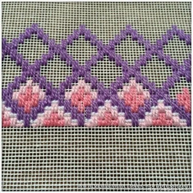 Tu haft na kanwie plastikowej - technikę tę wykorzystuje się do haftu torebek, różnych pudełek i szkatułek, a nawet dywaników.