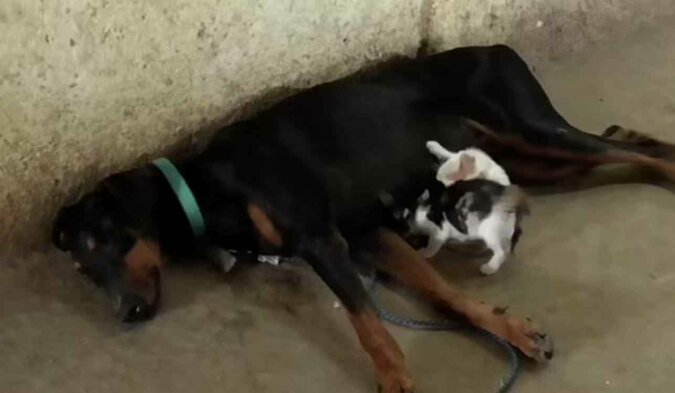 Świat opiera się na życzliwości i wzajemnej pomocy, co najlepiej widać w interakcjach międzygatunkowych. Sunia rasy doberman i kotka domowa były w ciąży, ale niestety nie wszystko poszło zgodnie z planem. Zobaczcie co się działo dalej.
