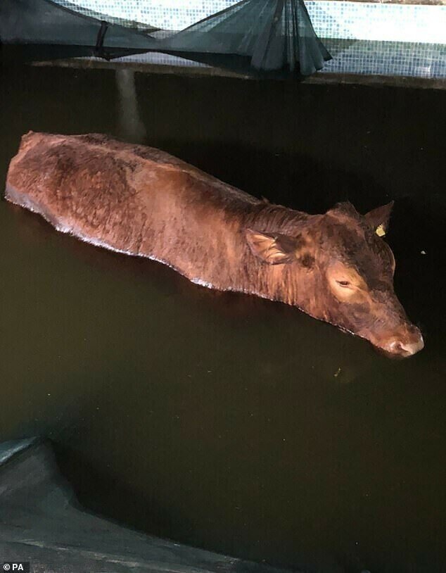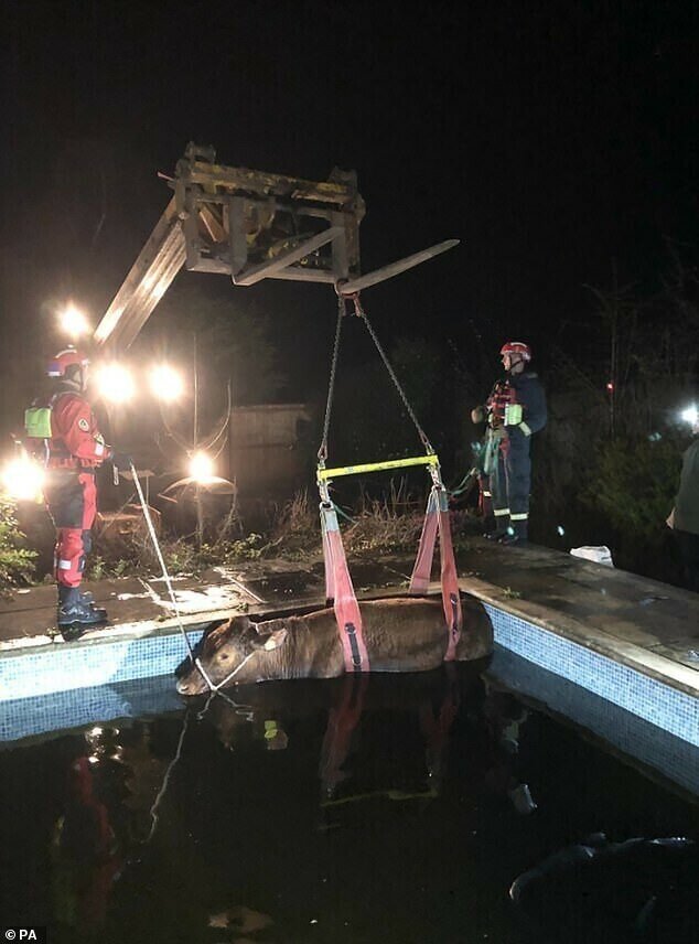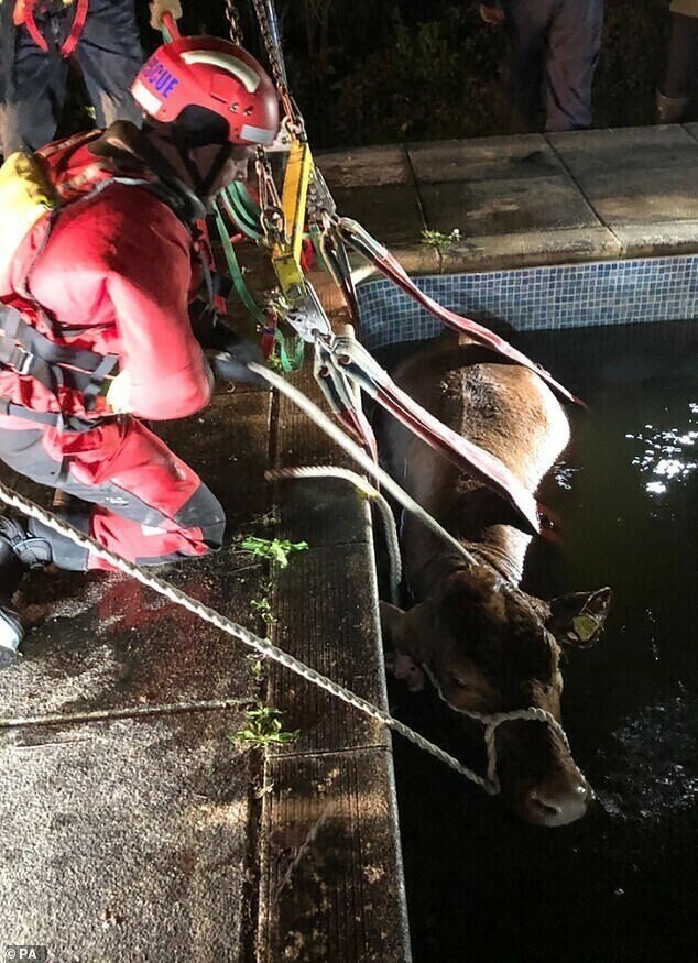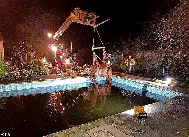 Mieszkańcy jednego z prywatnych domów w hrabstwie Devon w Anglii zauważyli w swoim basenie krowę. Okazało się, że 600-kilogramowy zwierzak uciekł z pobliskiej farmy, zawędrował na teren prywatny i przez przypadek wpadł do basenu. Kiedy właściciele domu skontaktowali się z ratownikami, zamarznięty zwierzak już wtedy przebywał w wodzie od około czterech godzin.