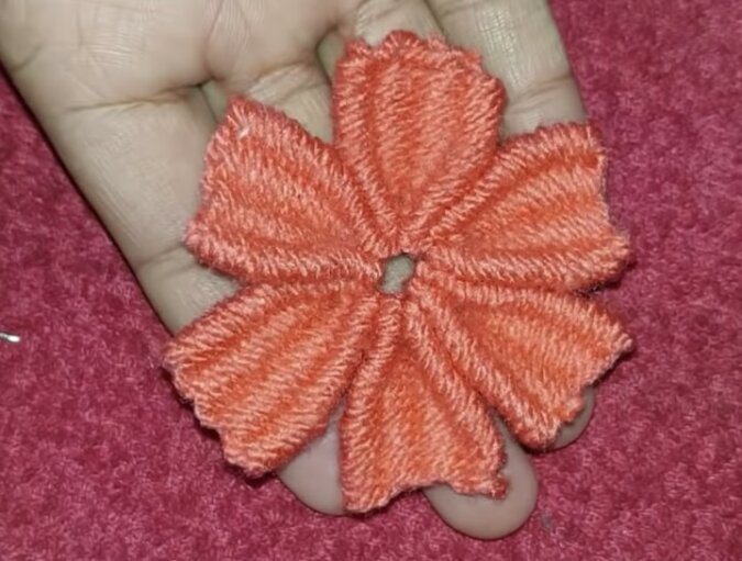 Lekko ściśnij nieco węższą część i połącz wszystkie sześć elementów za pomocą igły.