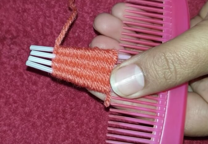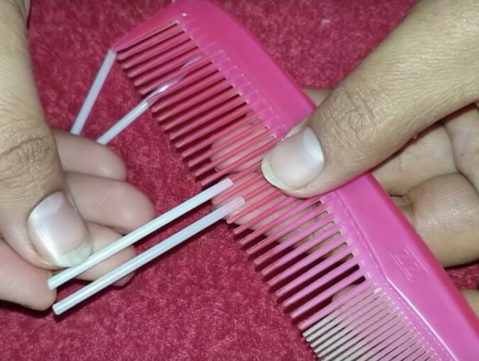 Odetnij końcówkę patyczków. Nałóż je na zęby grzebienia.