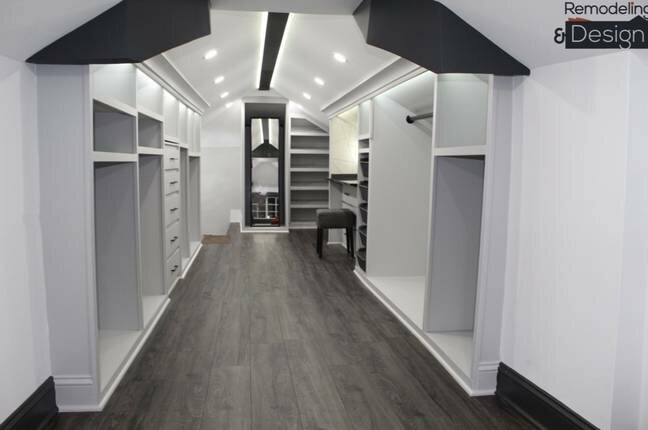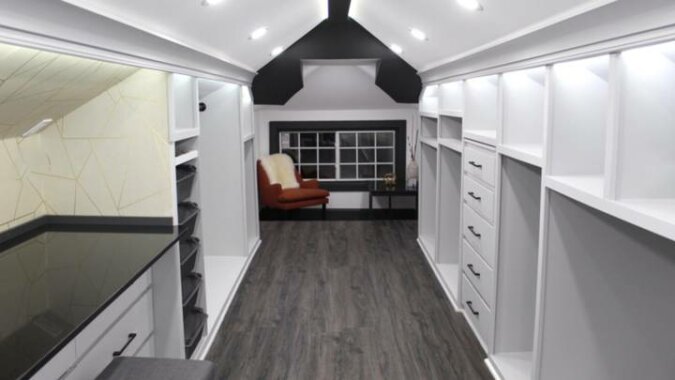 Przerobienie strychu na garderobę jest po prostu imponujące.