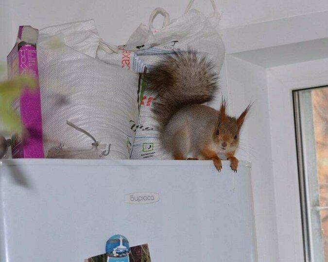 Okazało się, że wiewiórka nie była martwa. Ogrzała się w mieszkaniu i uznała, że ona tu rządzi.