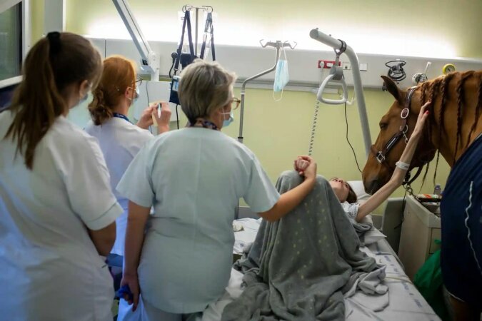 15-letni ogier o imieniu Doktor Peyo wraz ze swoim właścicielem przez kilka lat rywalizował i odtwarzał turnieje rycerskie. Od czterech lat łagodzą cierpienie pacjentów na oddziale medycyny paliatywnej we Francji.