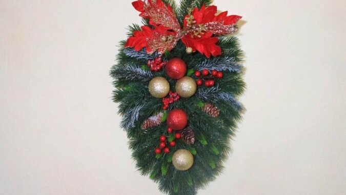 Tę uroczą ozdobę można wykonać ze sztucznych gałązek. Możesz nawet poddać recyklingowi starą sztuczną choinkę - nie wyrzucaj jej, zrób z niej wspaniałą nową dekorację świąteczną!