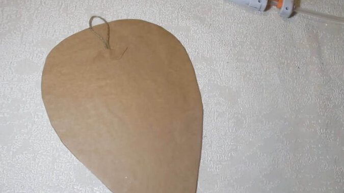 Wytnij z tektury dużą kroplę. Przyklej z obu stron za pomocą kleju papier ozdobny.