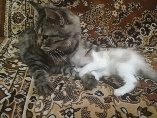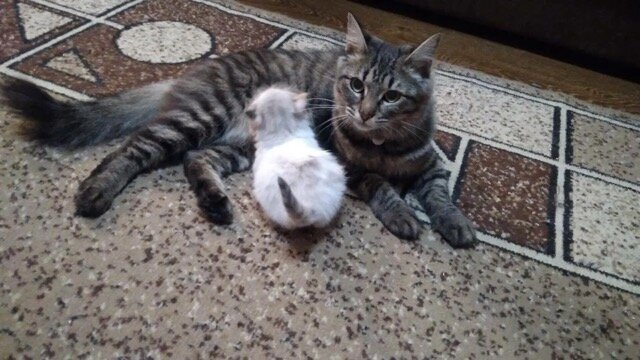 Kotka i kociak nie były do siebie podobne, dlatego ludzie od razu zaczęli się zastanawiać, czy to rzeczywiście matka i córka. Dopiero gdy zobaczyli, jak kotka opiekuje się maleństwem, zrozumieli, że są naprawdę rodziną.