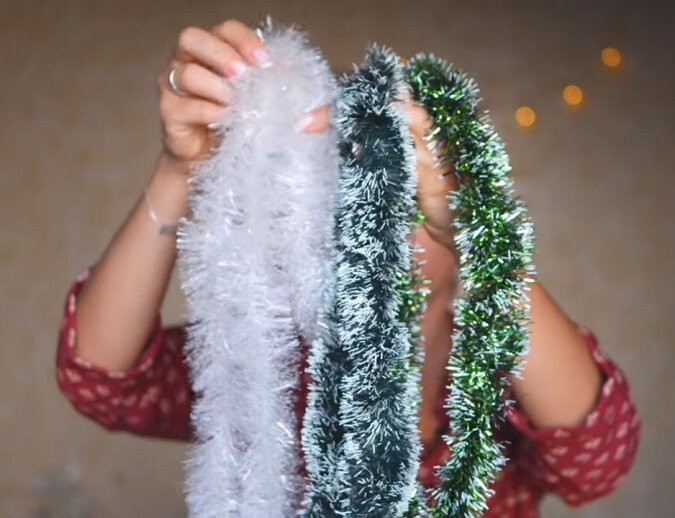 Przede wszystkim zdecyduj się na łańcuch choinkowy do swojego świątecznego wieńca. Najlepiej wybrać matowy, pozbawiony brokatu. Dla początkujących idealny jest łańcuch w kolorze zielonym, który podobny jest do choinki. Jeśli jednak jesteś dobry w łączeniu różnych kolorów i ozdób, to możesz zrobić wieniec w nietypowym odcieniu.