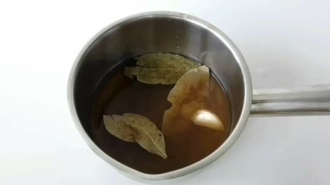 Drugi przepis: wrzuć do rondla 3 duże liście laurowe, 1 łyżeczkę mielonych goździków i 1 ząbek czosnku. Zalej 1 szklanką wody, doprowadź do wrzenia, gotuj przez 7 minut i wyłącz.