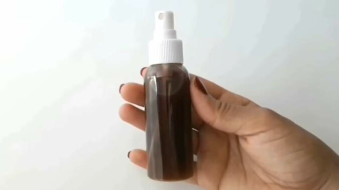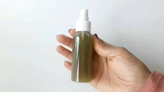 Przecedź i przelej do butelki z atomizerem. Spryskaj u nasady włosów, wmasuj w cebulki, pozostaw na 1 godzinę, a następnie umyj włosy szamponem. Można stosować dwa razy w tygodniu.