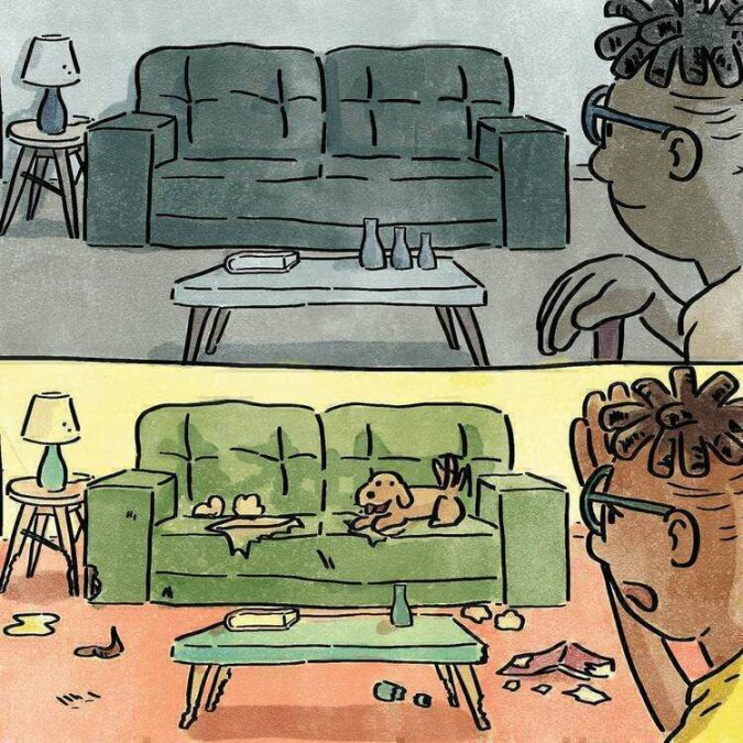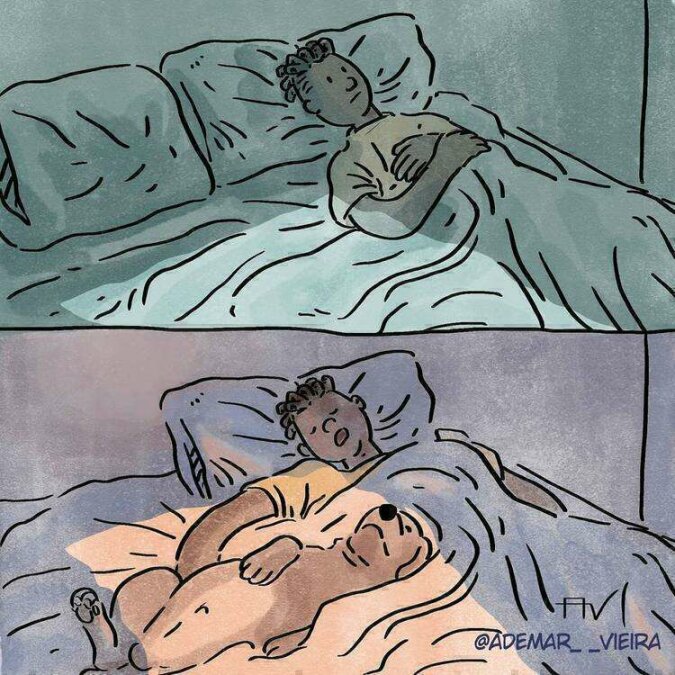 Artysta pokazał różnicę między życiem z psem i bez niego