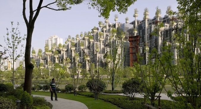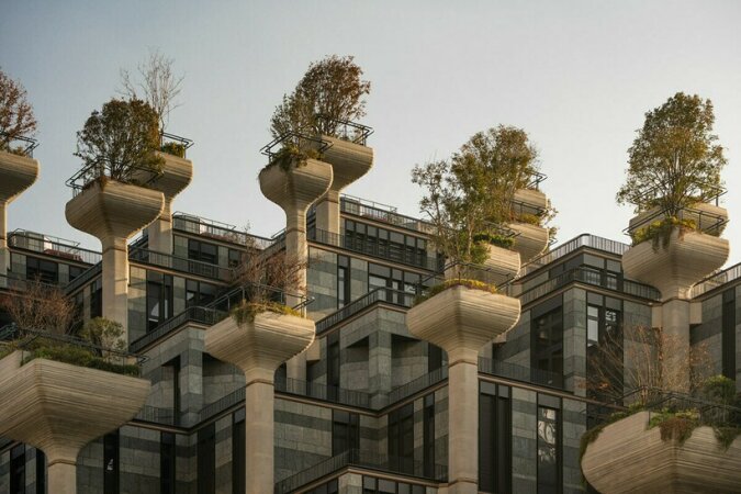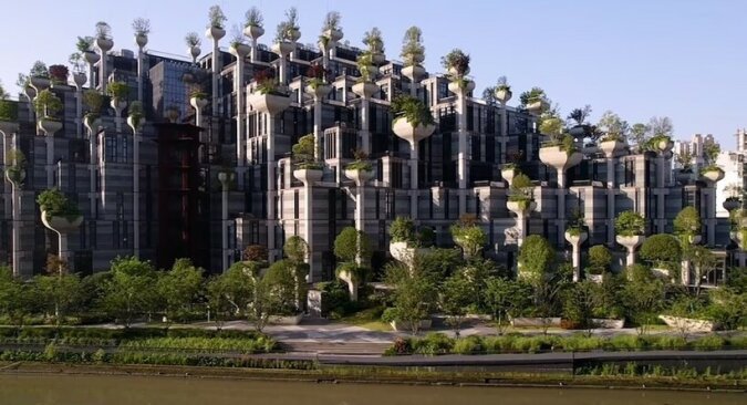 Konstrukcje inżynierskie, ustawione pod pewnym kątem i zawierające ogromne „donice” z drzewami i lianami sprawiają, że budynek wygląda jak niezwykłe miasto-ogród. Nie ma tu tysiąca, lecz dwieście pięćdziesiąt tysięcy terenów zielonych.