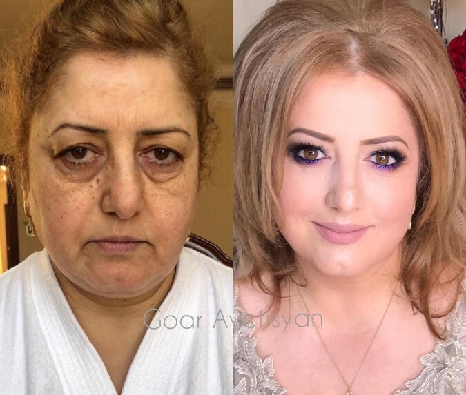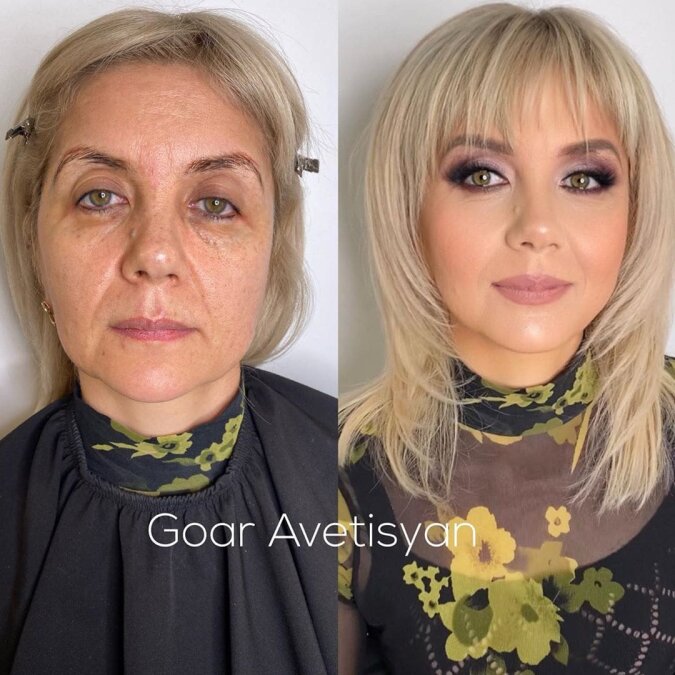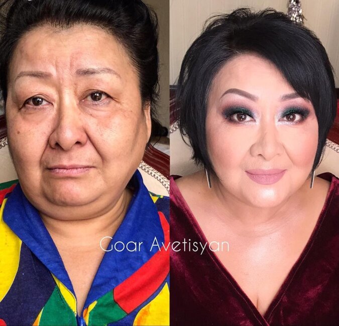 Ta kobieta po wykonaniu makijażu przez Goar wygląda o 20 lat młodziej.