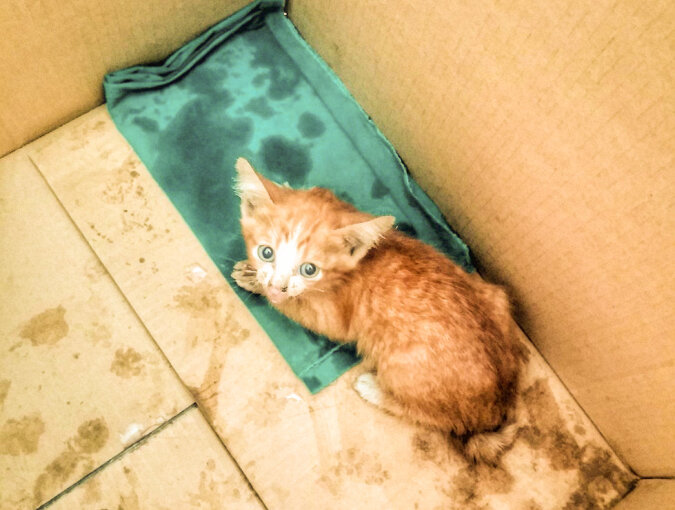 Rudzielec otrzymał odpowiednie imię - Honey. Został wykąpany, nakarmiony i zawieziony do weterynarza. Po zbadaniu okazało się, że kociak ma około 2 miesięcy, jest zdrowy. Potrzebuje miłości, jedzenia i opieki.