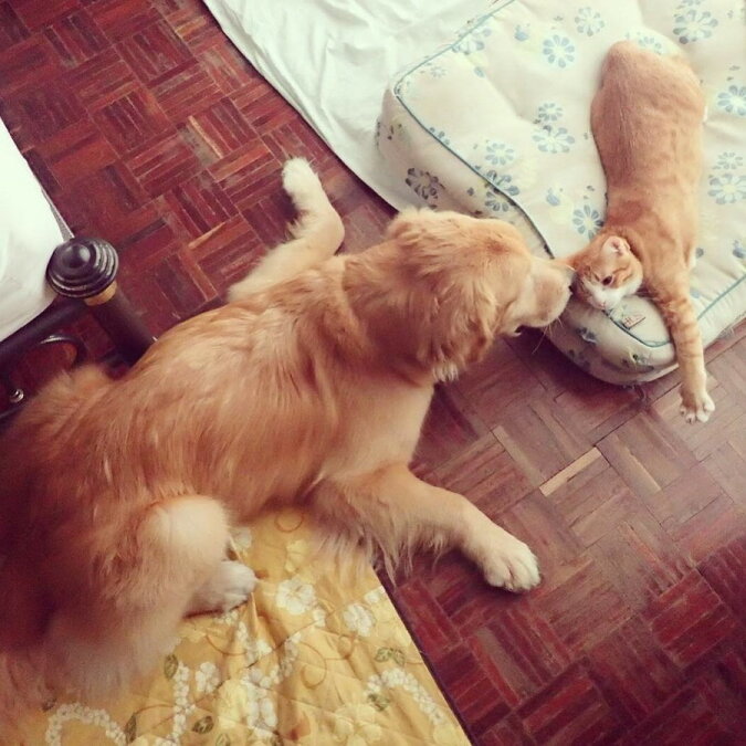 Oczywiście maleństwo zostało ze swoją nową rodziną. Nikt nawet nie myślał o tym, by oddać zwierzaka. Kociak bardzo się zaprzyjaźnił z Mamayo.