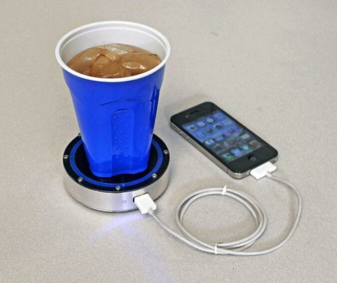Utrzymuje temperaturę napoju, tak jakby termos. Można również wykorzystać do ładowania telefonu komórkowego.