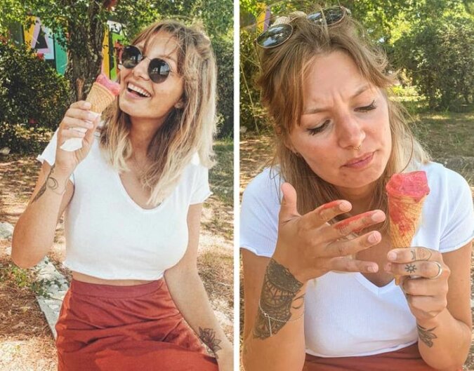 Rzadko kiedy modelka potrafi nie pobrudzić się podczas robienia zdjęć z lodami
