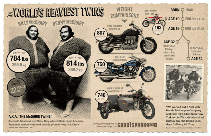 Bracia Billy i Benny McCrary zyskali sławę dzięki swojej wadze z powodu dość niegroźnej choroby dziecięcej, przez którą bez powikłań przeszły setki tysięcy dzieci.