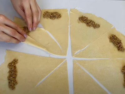 Rozwałkowane ciasto podziel jeszcze na 8 kawałków.