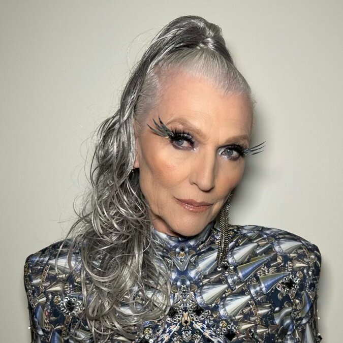 Jednak nie tylko jej kreacja zachwyciła publiczność. Na szczególną uwagę zasługiwała również fryzura i makijaż Maye Musk. Jej siwe włosy były starannie związane w wysoki kucyk, a wizażystka podkreśliła jej oczy doklejając ogromne rzęsy. W połączeniu z ekstrawagancką parą kolczyków, sprawiło to, że wyglądała niesamowicie stylowo i zapadała w pamięć.