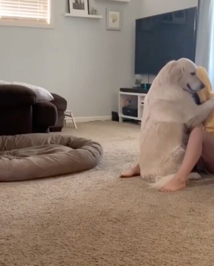 Na filmie Jen siedzi na podłodze z twarzą w dłoniach. Gdy Watson ją widzi, podbiega i ją obejmuje. Gdy Jen czuje się źle, Watson ją przytula. Prawie tak, jakby mówił: „Jestem tu. Możesz na mnie polegać."