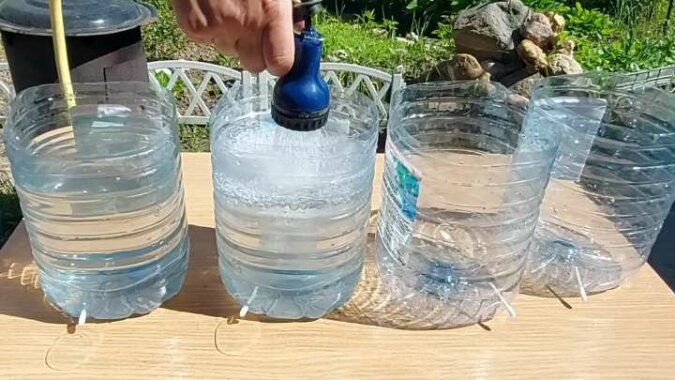 Umieść butelki obok roślin. System nawadniania kropelkowego zadba o Twoje rośliny!