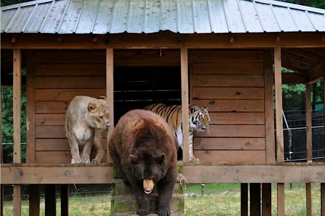 Lwy, tygrysy i niedźwiedzie zazwyczaj nie żyją razem. Ale nie każde zwierzę przeżyło traumę, która utworzyła więź między 3 różnymi drapieżnikami.