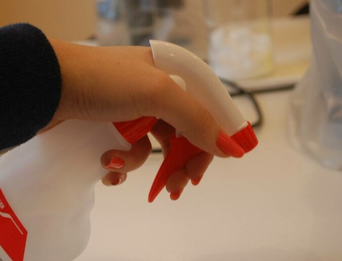 Wszystkie składniki wymieszać w dowolnym naczyniu i odstawić na pół godziny. Przygotować butelkę ze spryskiwaczem, można użyć nawet starego opakowania po płynie do szyb itp. Po upływie 30 minut przelać do butelki i rozpylać w razie potrzeb. Bezpiecznie i naturalnie!