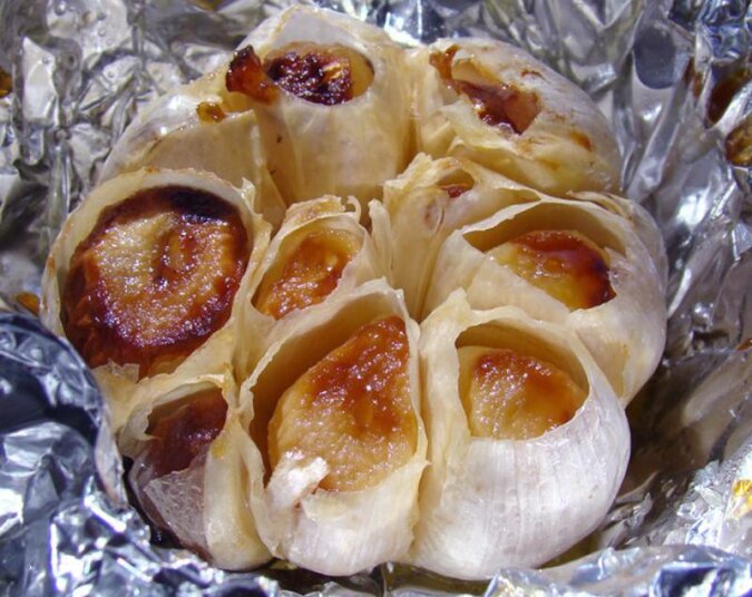 1. Umieszczenie główki czosnku w piekarniku rozgrzanym do temperatury 175 stopni oraz pieczenie jej do uzyskania miękkości produktu.